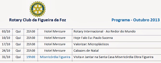 O clube reuniu, no passado dia 4 de julho, no Hotel Mercure, para a cerimónia e jantar de transmissão de tarefas entre Conselhos Diretores, sessão em que estiveram presentes o Governador Assistente do distrito rotário 1970 para este clube, Comp. Sérgio Ribau Esteves (Rotary Club de Ílhavo), o vice-presidente da autarquia, Dr. António Tavares, representantes de outros clubes de serviço da cidade (Lions Club da Figueira da Foz e Lions Club de Santa Catarina), recebidos por uma centena de rotários figueirenses e dos clubes de Coimbra, Leiria, Montemor-o-Velho e Marinha Grande.